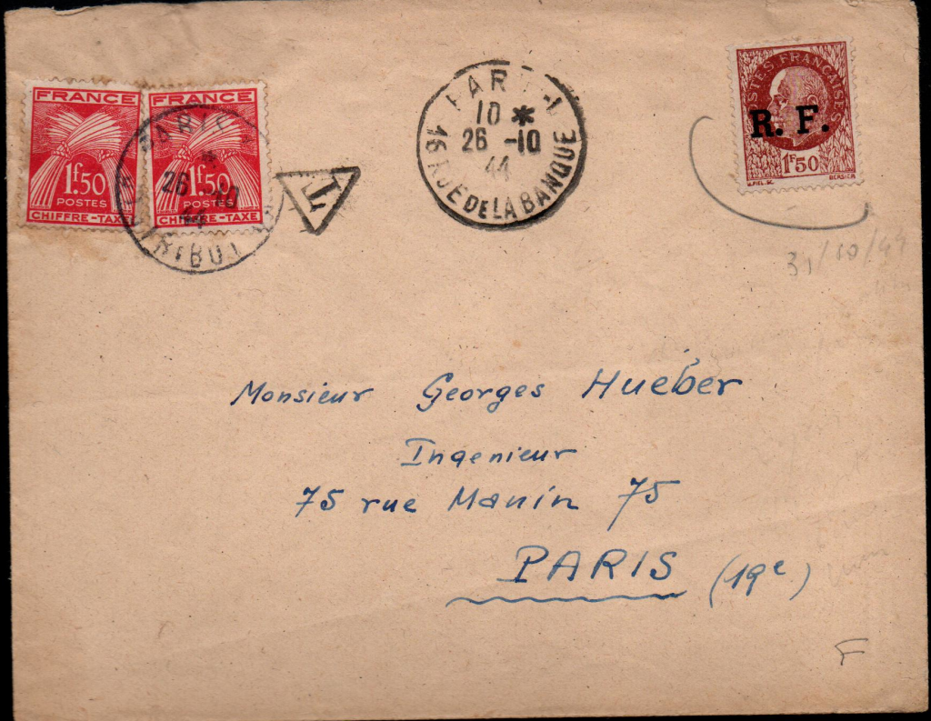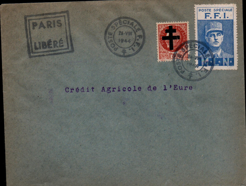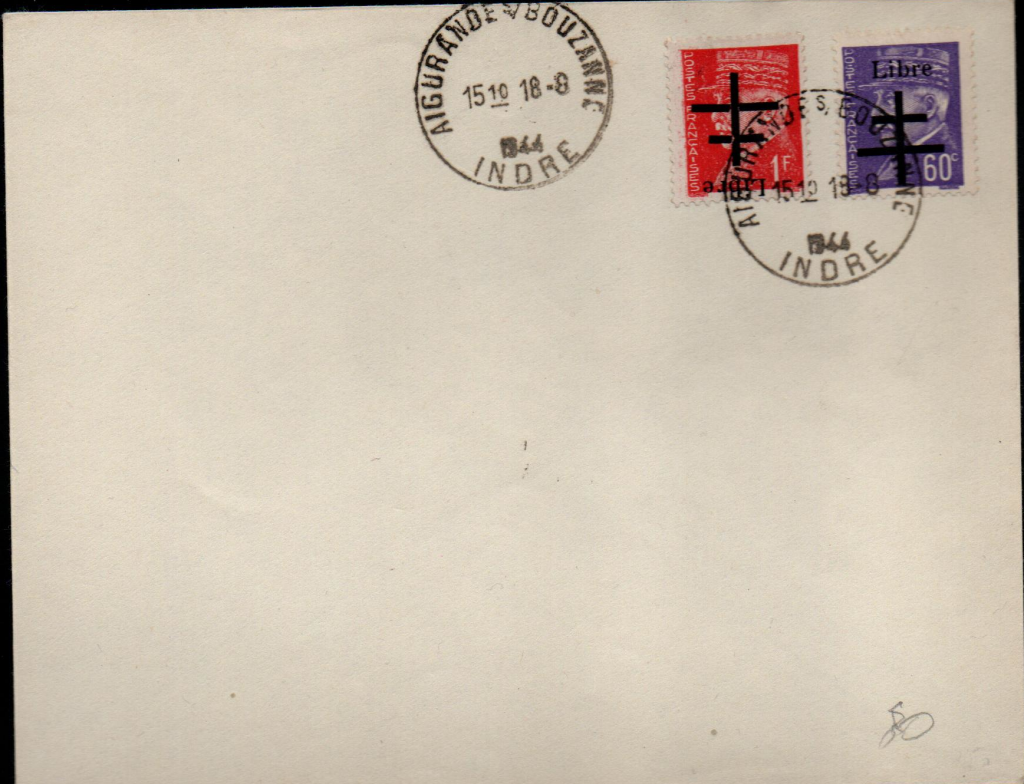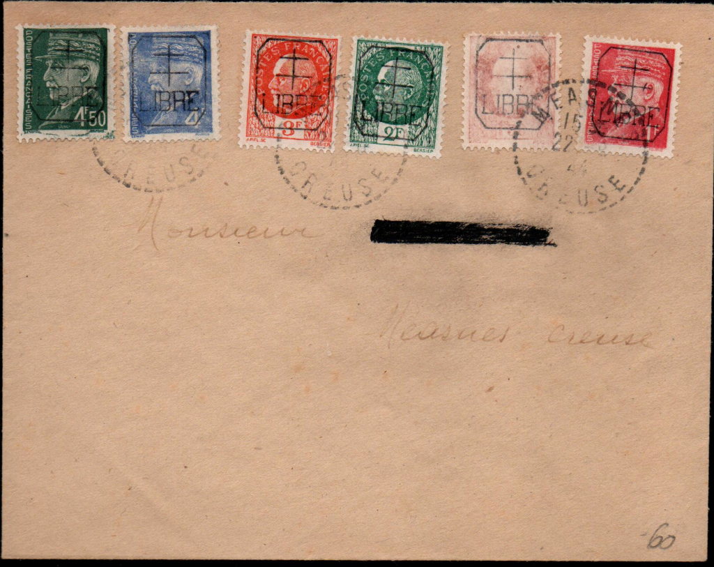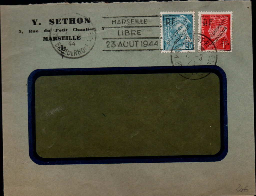 Enveloppes affranchies avec des timbres surchargés de la libération.