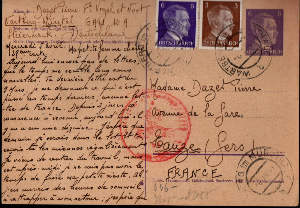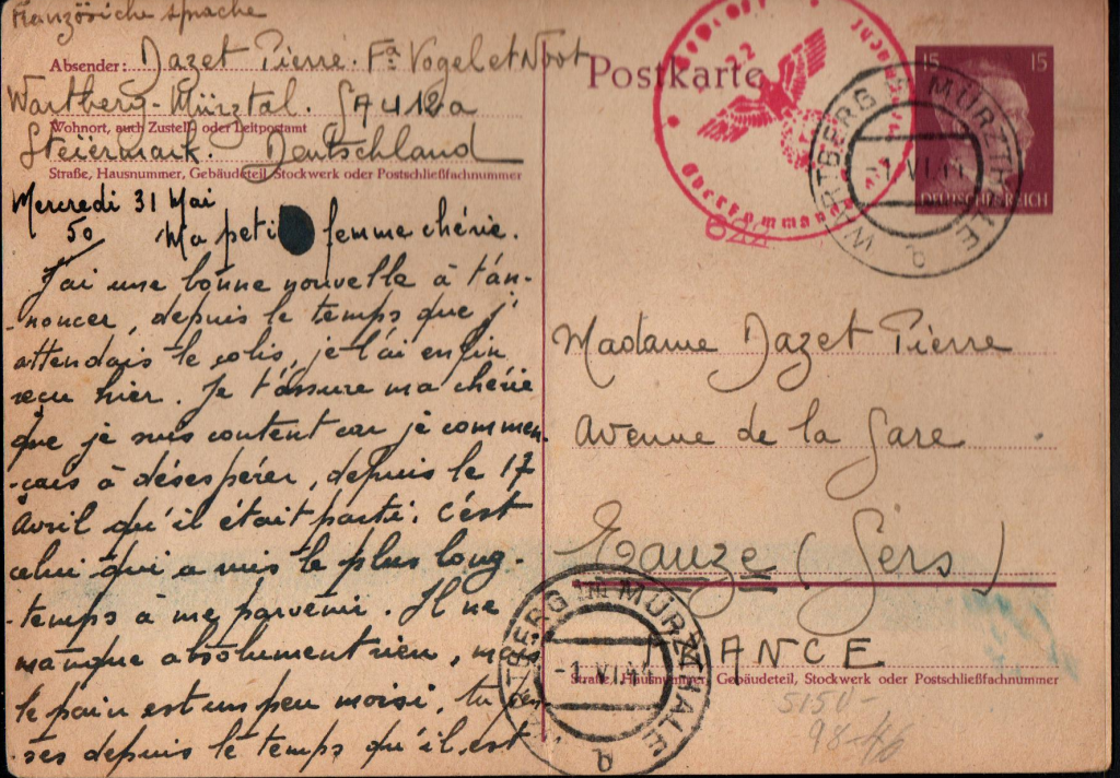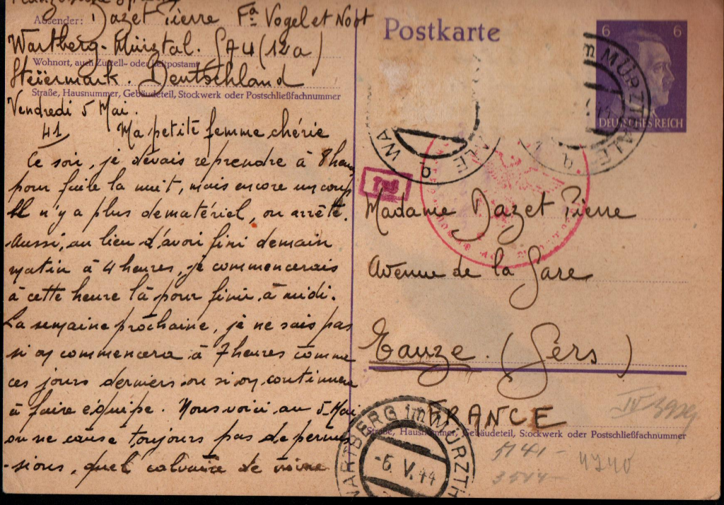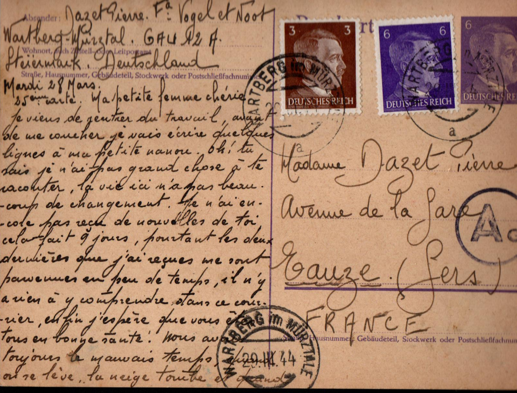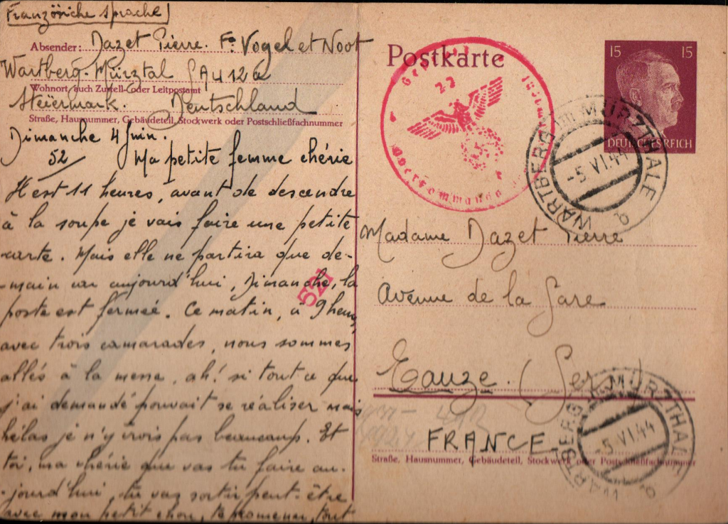 Pierre Dazet est en STO à Wartberg im Mürztal en actuelle Autriche.