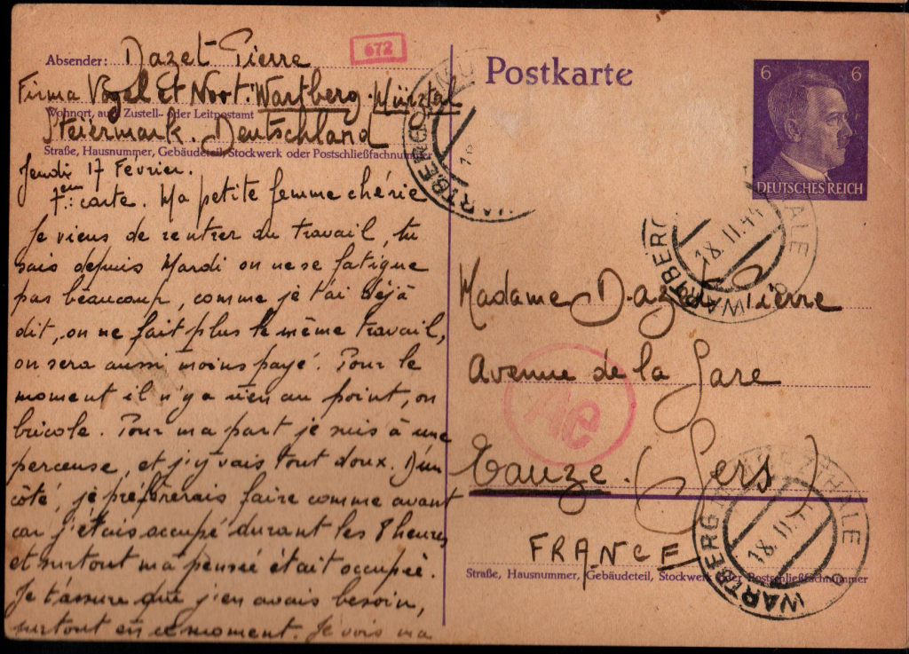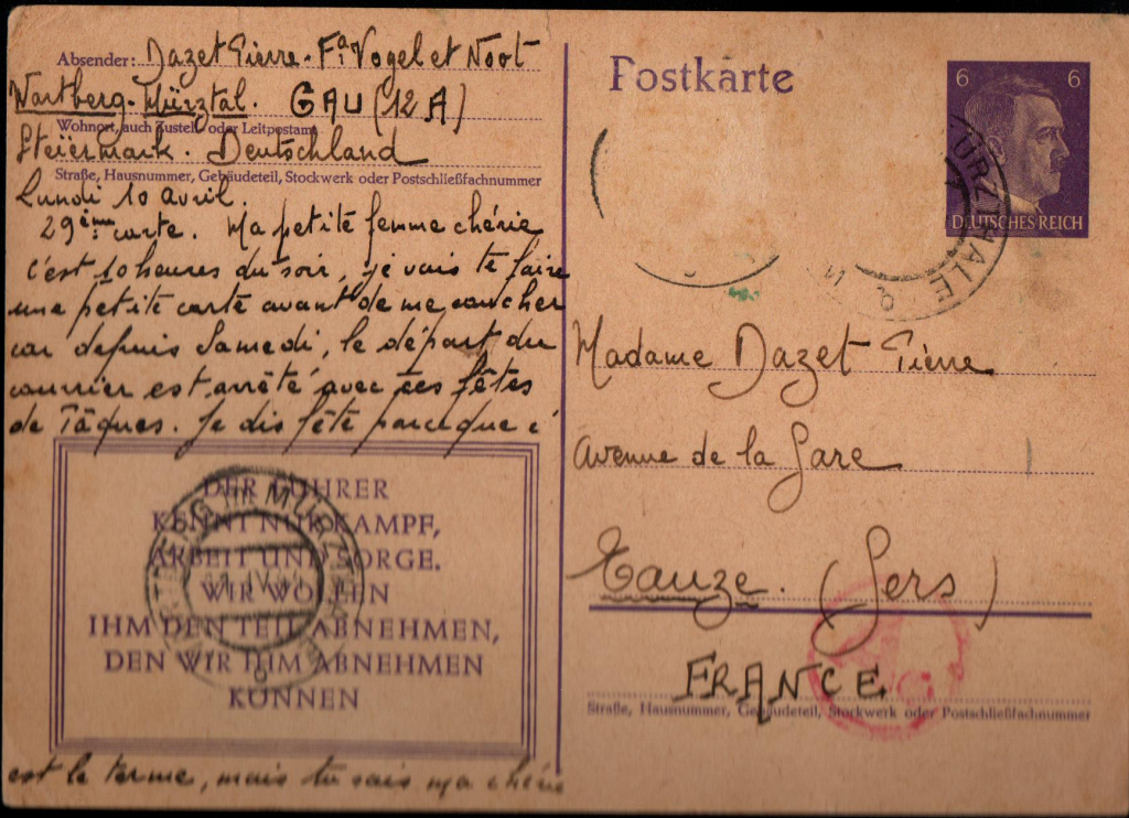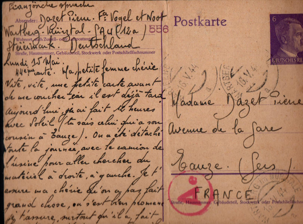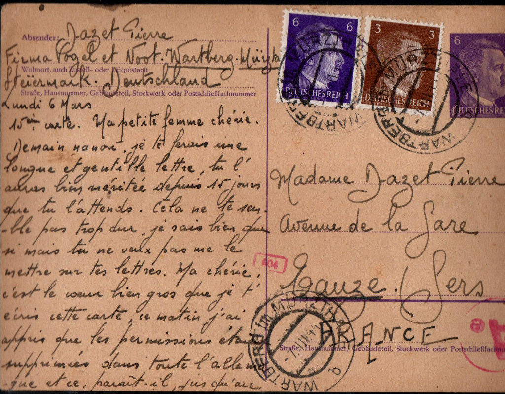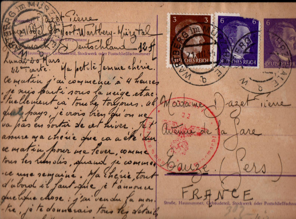 Pierre Dazet est en STO à Wartberg im Mürztal en actuelle Autriche.